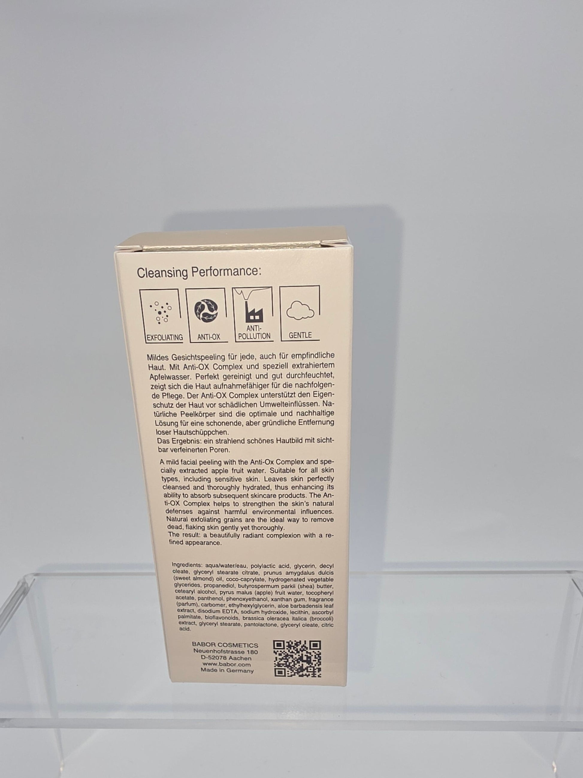 A mild facial exfoliant for all skin types, including sensitive skin. The Babor Cleansing Gentle Peeling is formulated with the Anti-OX Complex and apple water extract to gently remove dead skin cells while strengthening the skin’s natural defenses against environmental stressors. The skin is left deeply cleansed, refreshed, and hydrated, with visibly refined pores and a radiant, smooth complexion.