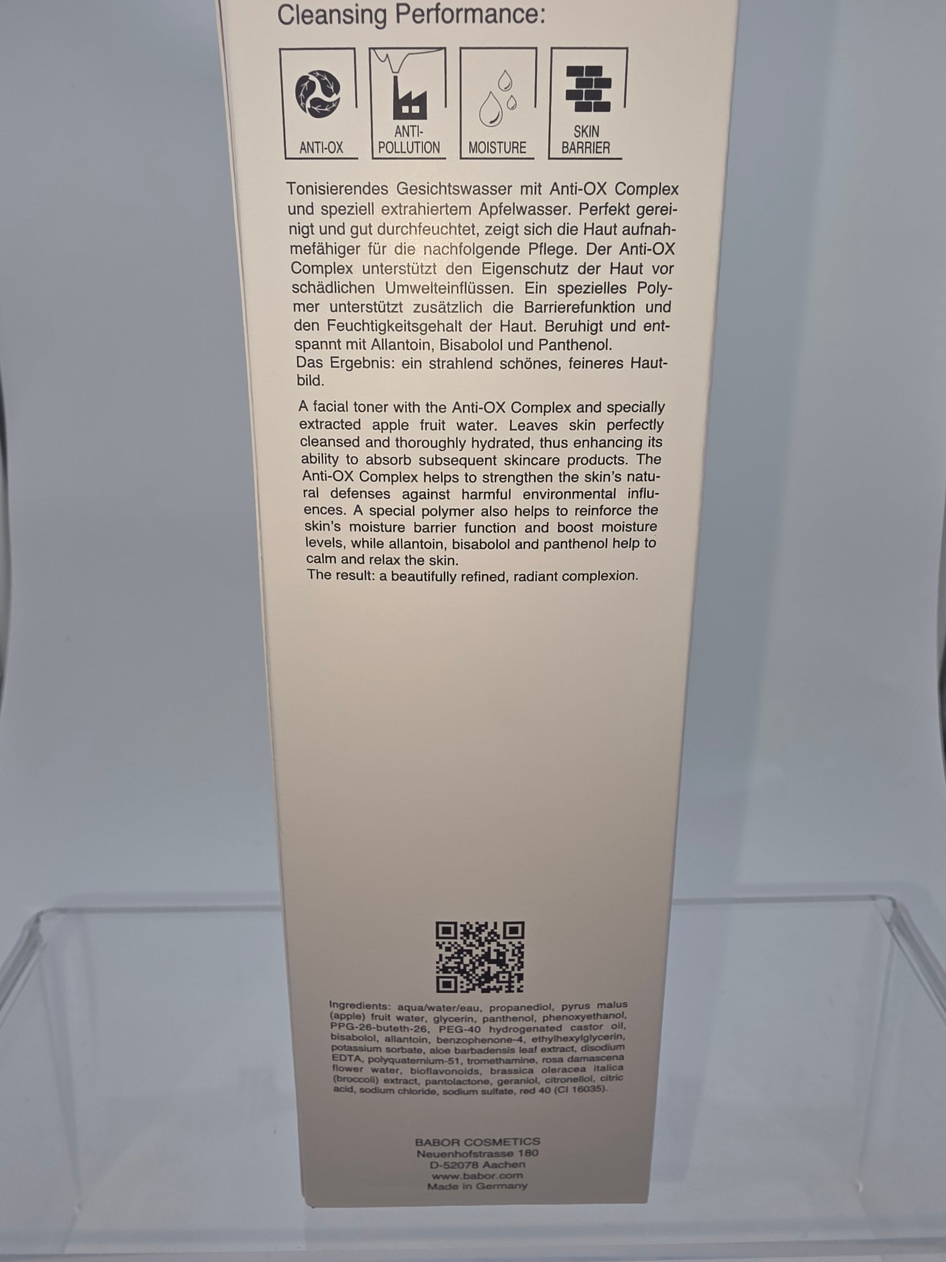 The Babor Cleansing Rose Toning Essence is a refreshing, alcohol-free toner suitable for all skin types. Enriched with the Anti-OX Complex and apple fruit water, it protects the skin from environmental stress while restoring hydration and balance. Soothing ingredients such as allantoin, bisabolol, and panthenol calm and condition the skin, leaving it soft, radiant, and perfectly prepped for your skincare routine.