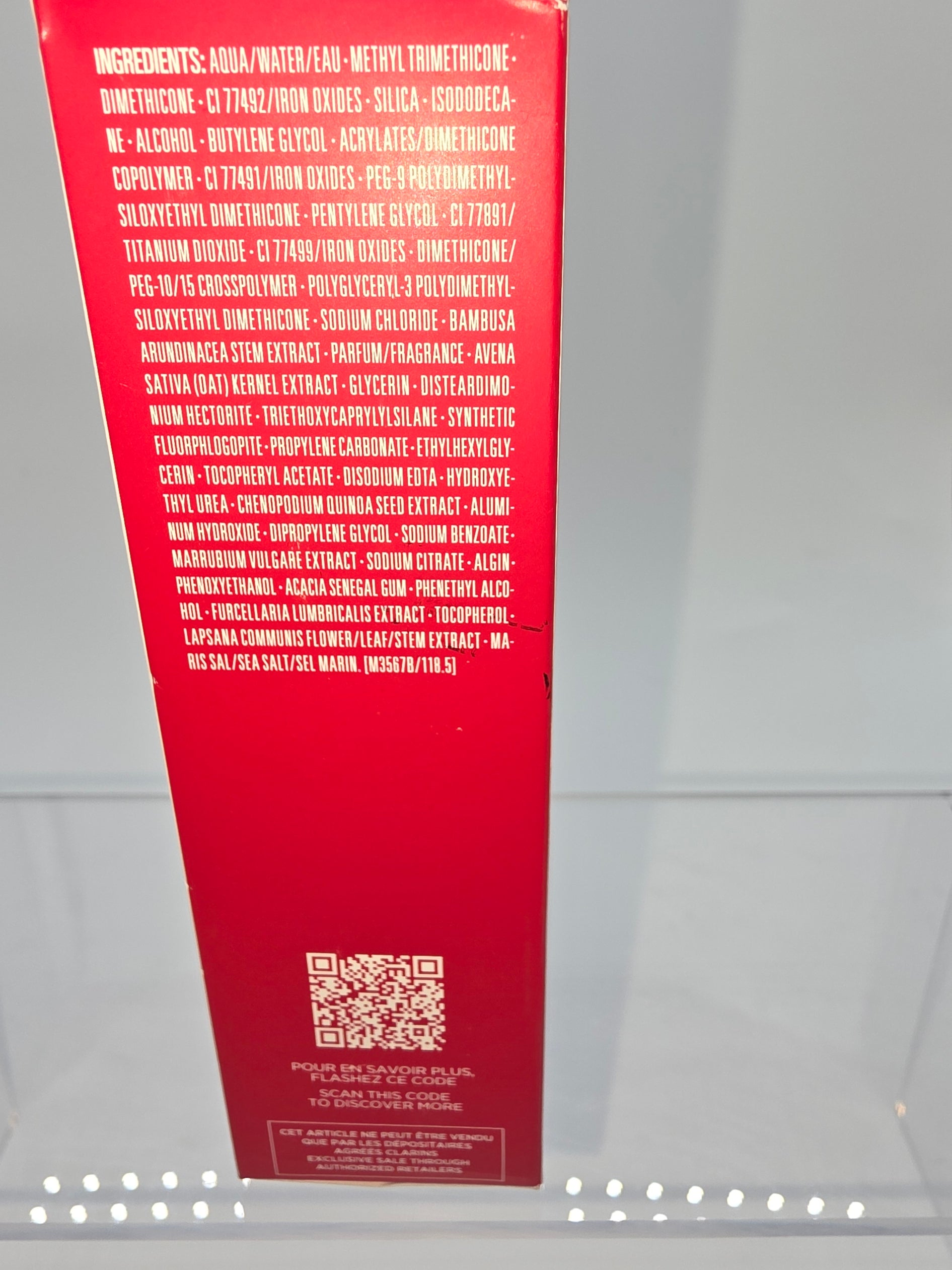 Clarins Everlasting Long‑Wearing & Hydrating Matte Foundation—shade 118.5 N Chocolate. It’s a 1‑oz (30 mL) liquid foundation featuring a matte yet hydrating finish, known for full coverage, 24‑hour wear, and skin-friendly ingredients like bamboo, quinoa, and oat sugar extracts. New in box.