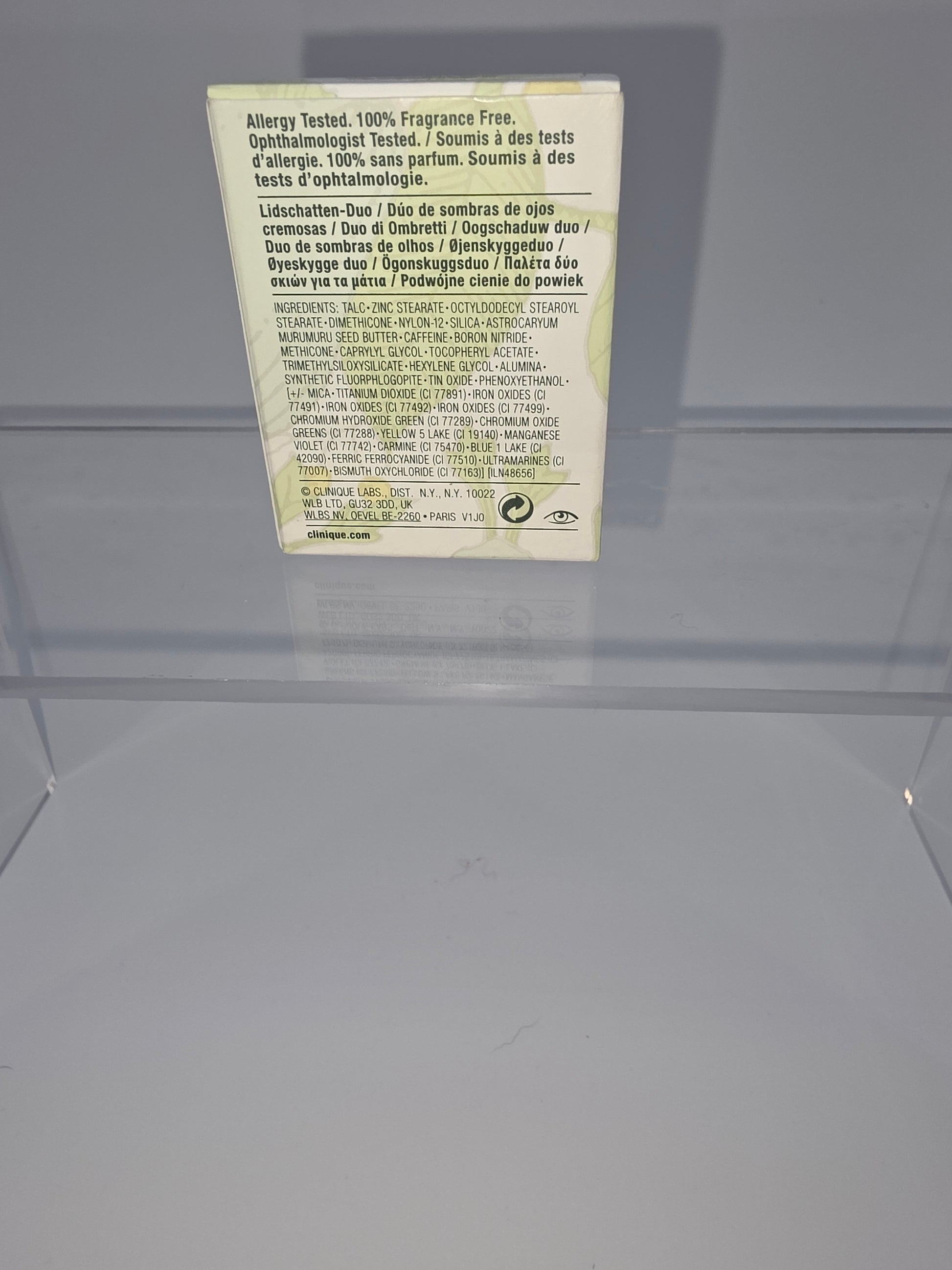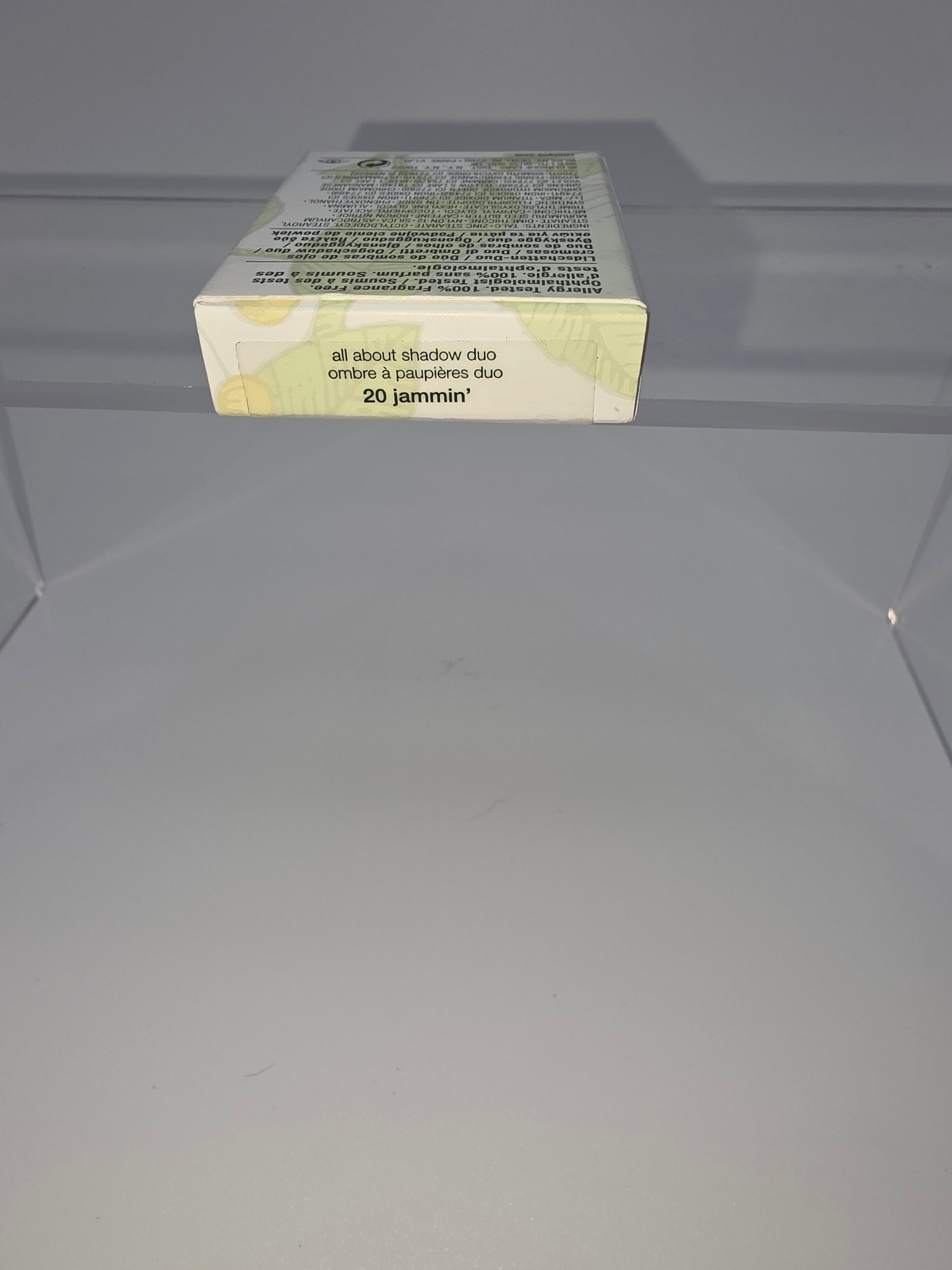 Clinique All About Shadow Duo in the shade 20 Jammin’, a convenient compact containing two perfectly paired powder eyeshadows with a built‑in applicator. This duo provides rich, blendable color that’s long‑wearing, crease‑ and fade‑resistant, and formulated to be safe for sensitive eyes and contact lens wearers. New in box.