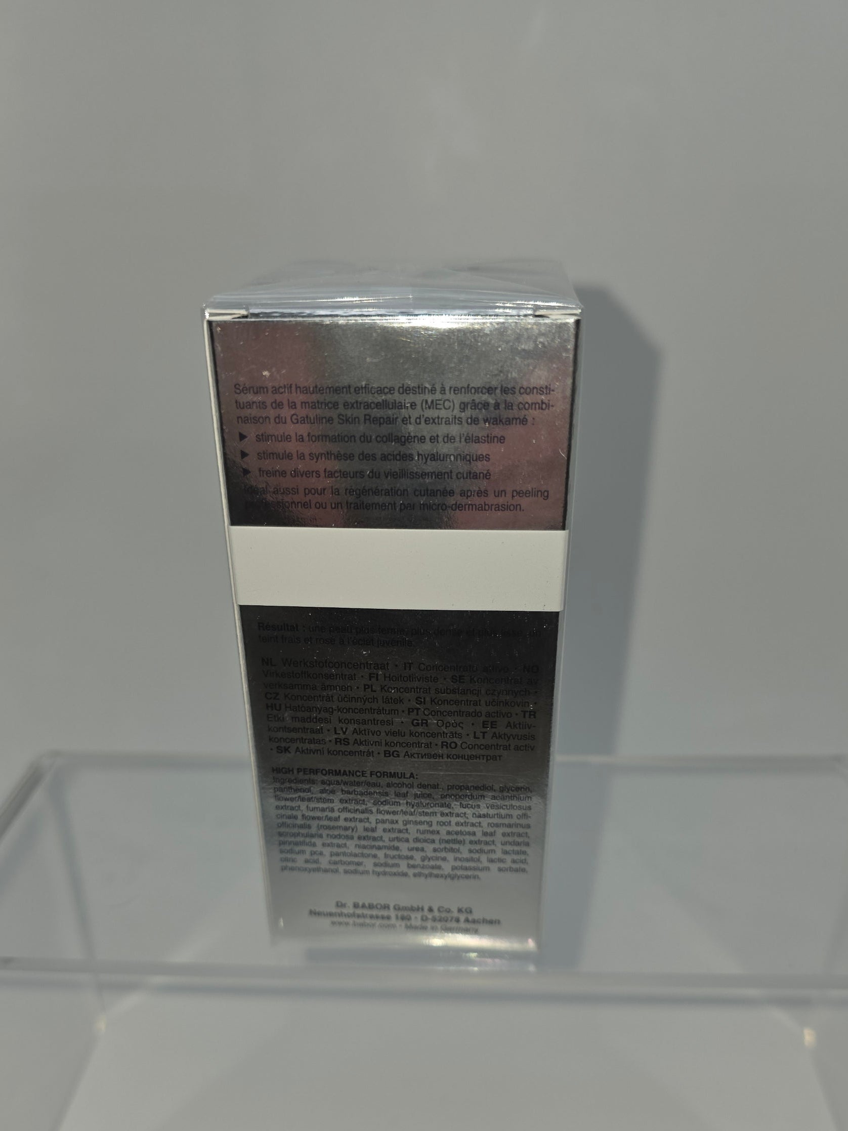 A powerful repair serum designed to strengthen and rejuvenate the skin’s extracellular matrix (ECM). Doctor Babor Repair RX Ultimate ECM Repair Serum uses 5% Biogen Plant Extract combined with Gatuline® Skin Repair and Wakame Extract to promote elasticity, firmness, and skin resilience. This intensive treatment helps restore vitality, smoothness, and youthful radiance, making it ideal for skin in need of regeneration or following professional treatments like microdermabrasion or peels.