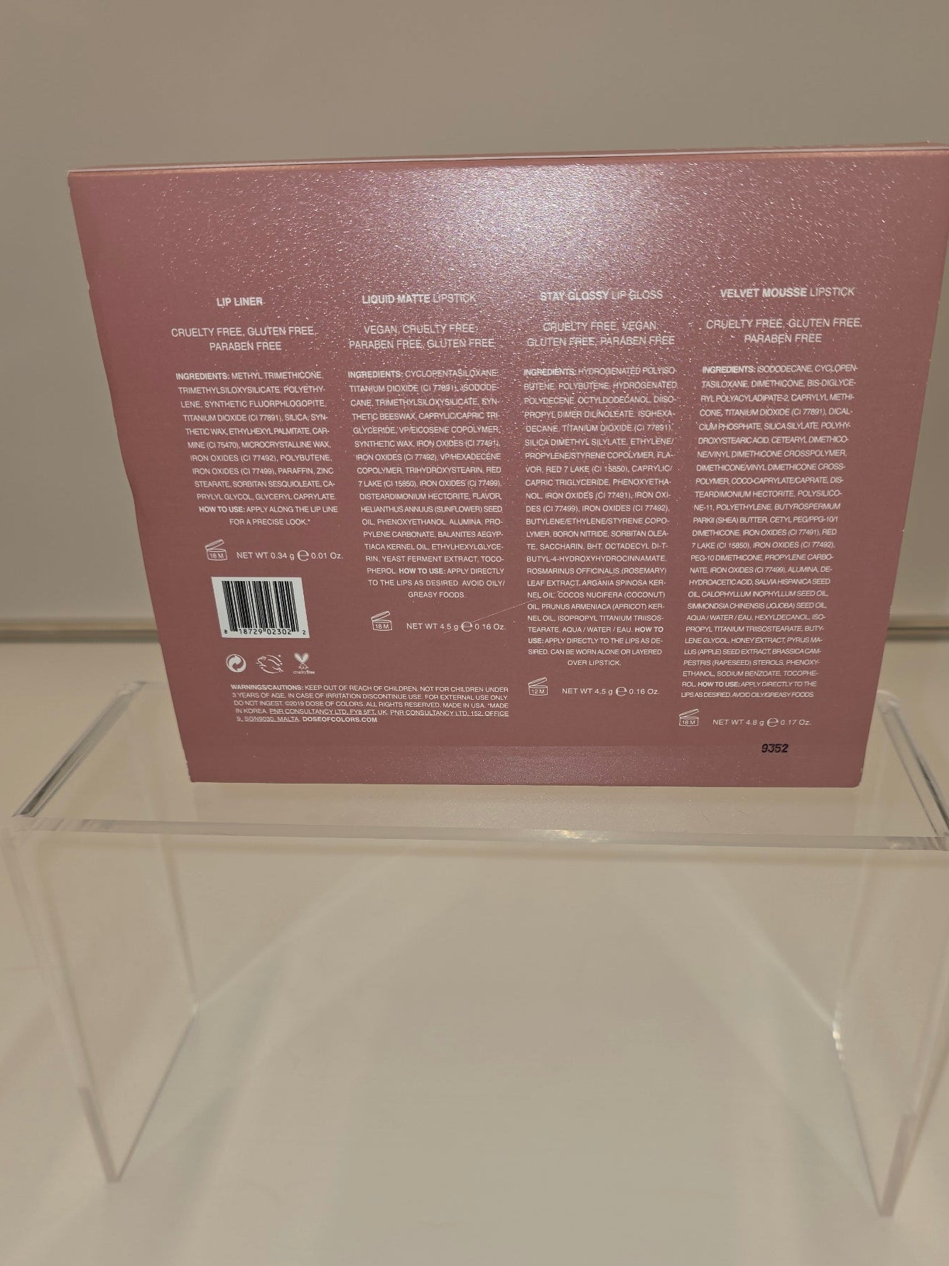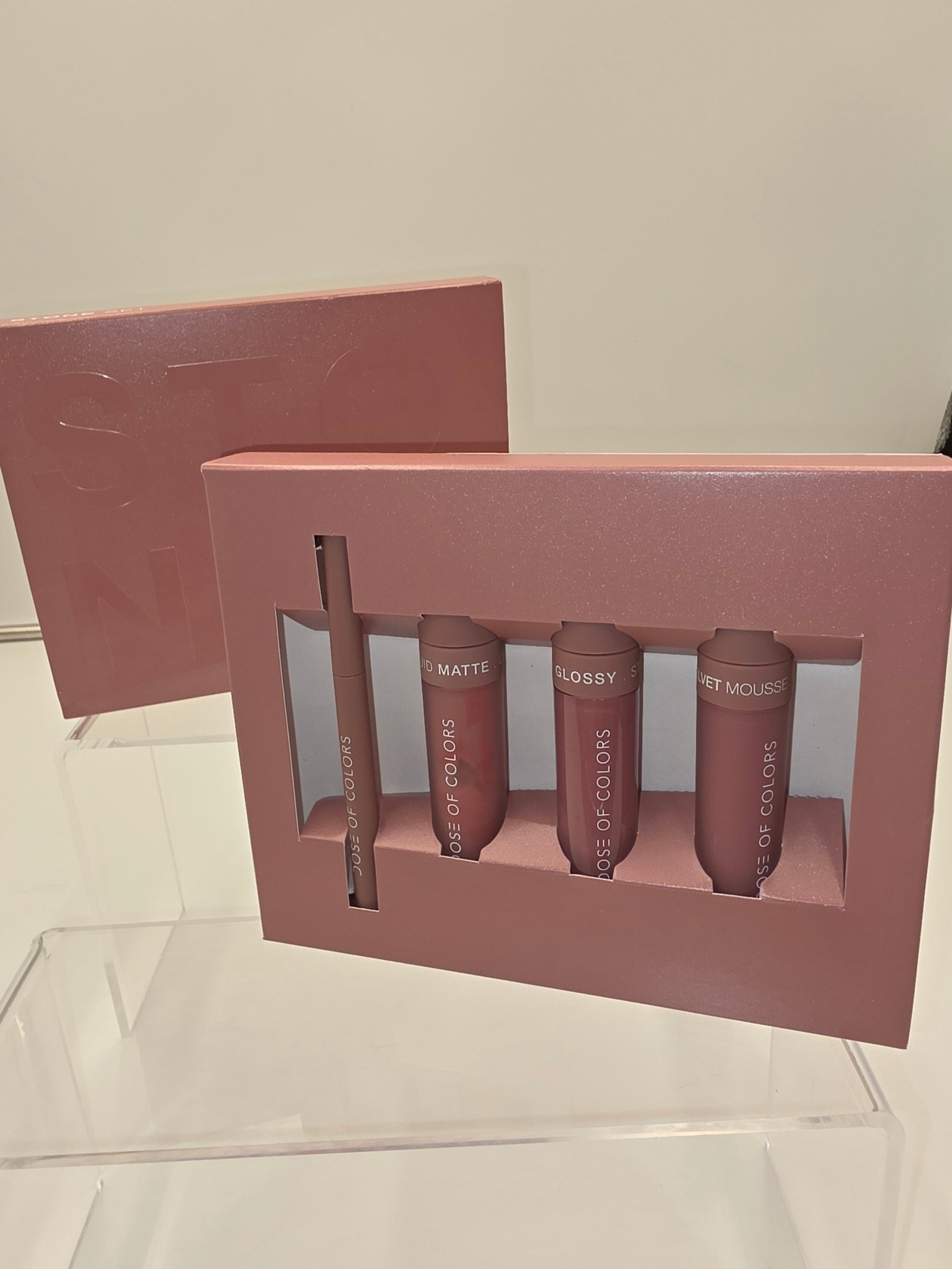 The Dose of Colors Stone Set is a limited edition lip collection featuring four expertly curated products: a precise lip liner, a richly pigmented liquid matte lipstick, a high-shine glossy lip gloss, and a smooth velvet mousse lipstick. Each item is designed to complement one another, offering versatile looks from bold matte to luminous gloss. Perfectly packaged new in box, this set provides everything needed for a flawless lip routine with professional-quality formulas.