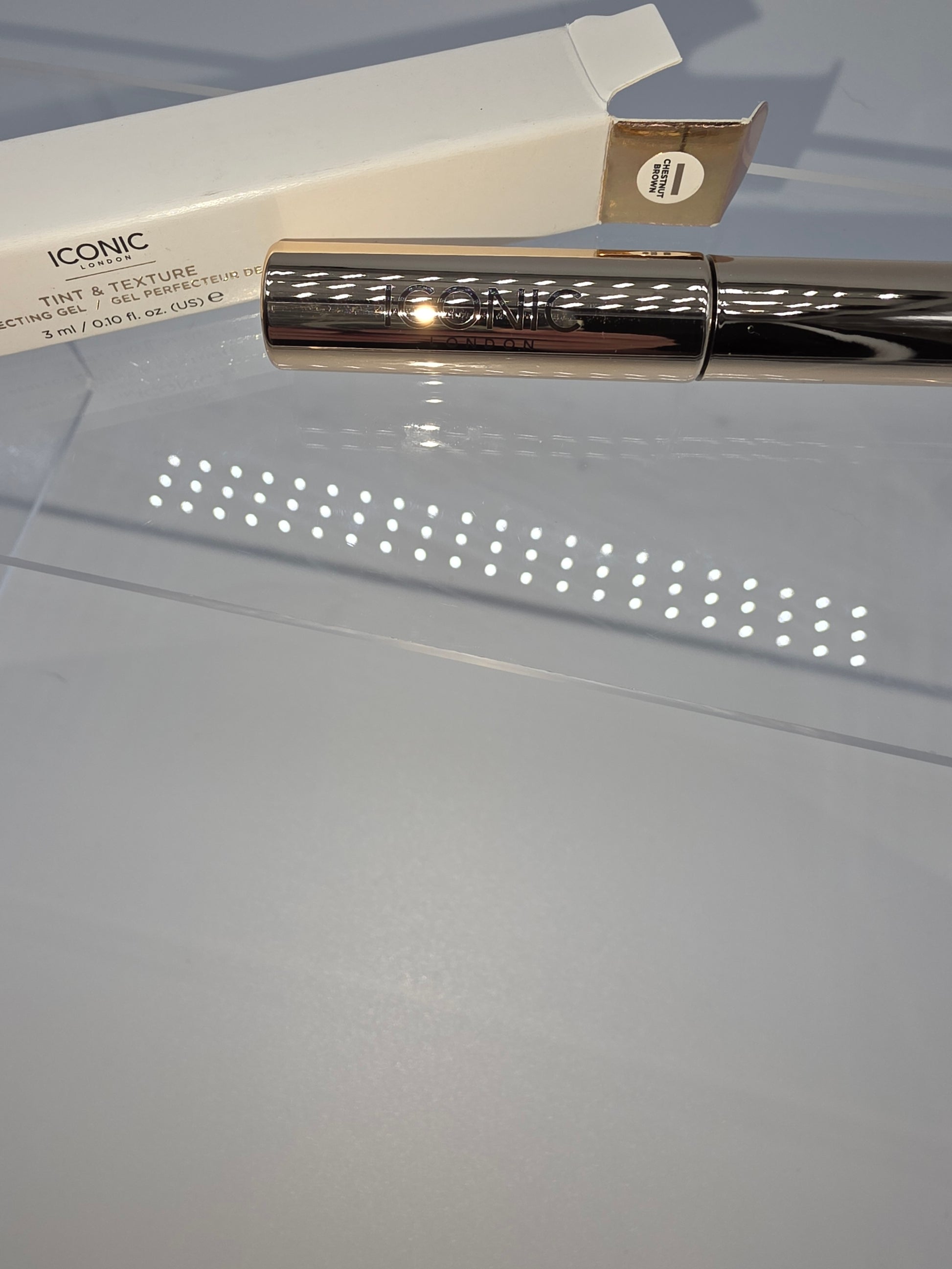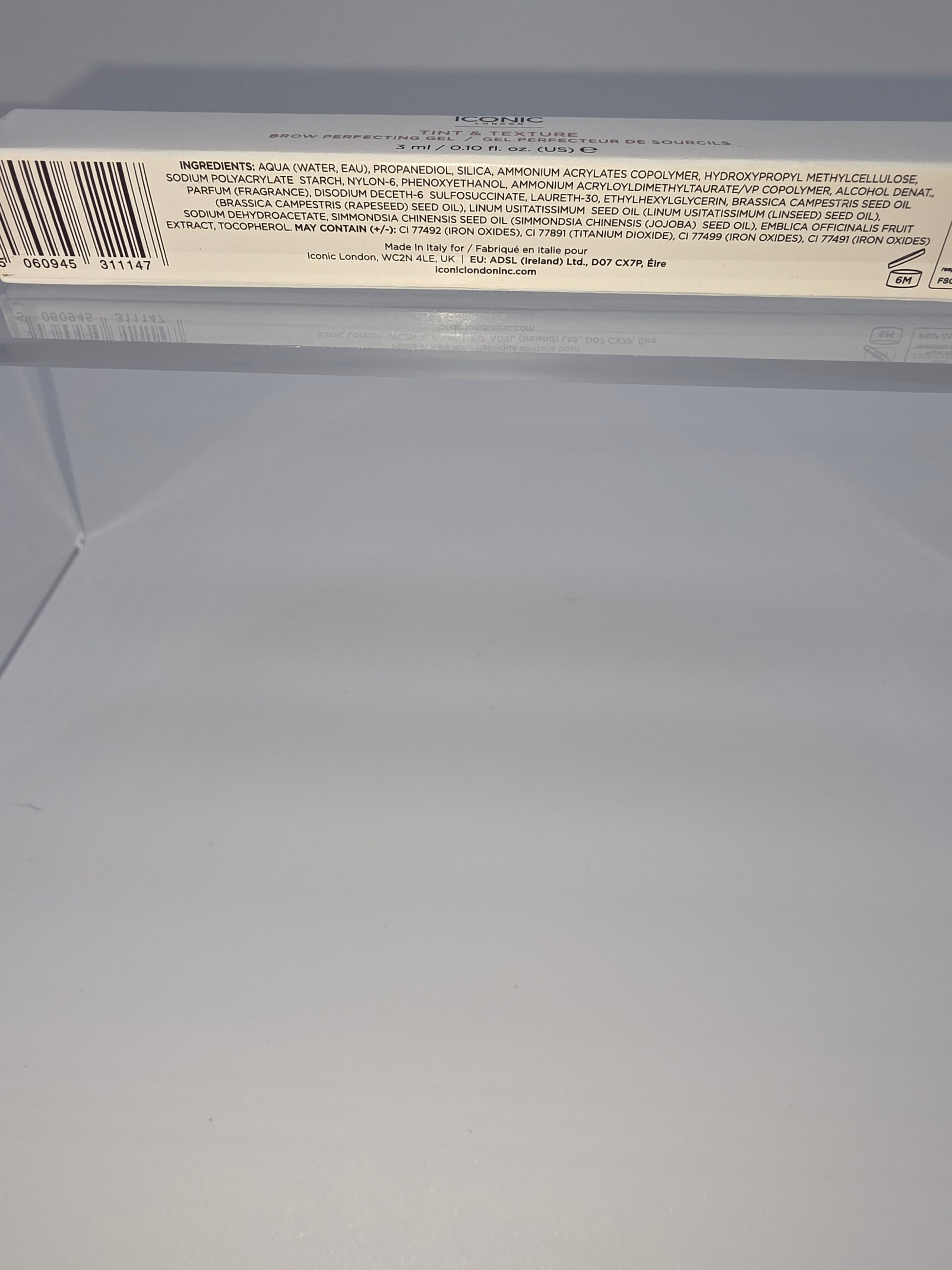 ICONIC London Tint & Texture Brow‑Perfecting Gel in the Chestnut Brown shade (0.10 fl oz / 3 mL). A tinted brow gel by ICONIC London that combines pigment with micro-fibers to fill in, volumize, and naturally tint your brows. The lightweight gelatinous formula provides a flexible hold and includes nourishing botanical oils to condition the hairs, resulting in fuller, feathered eyebrows with a polished, natural finish. New in box.