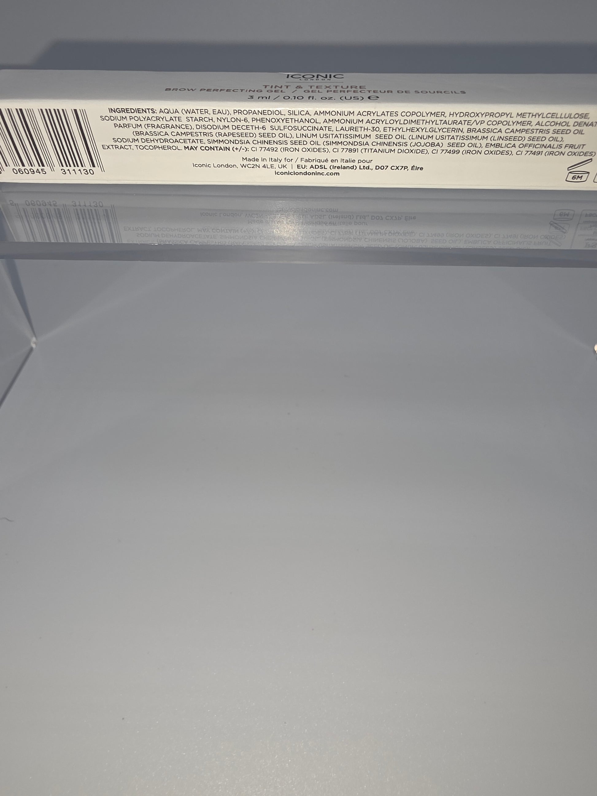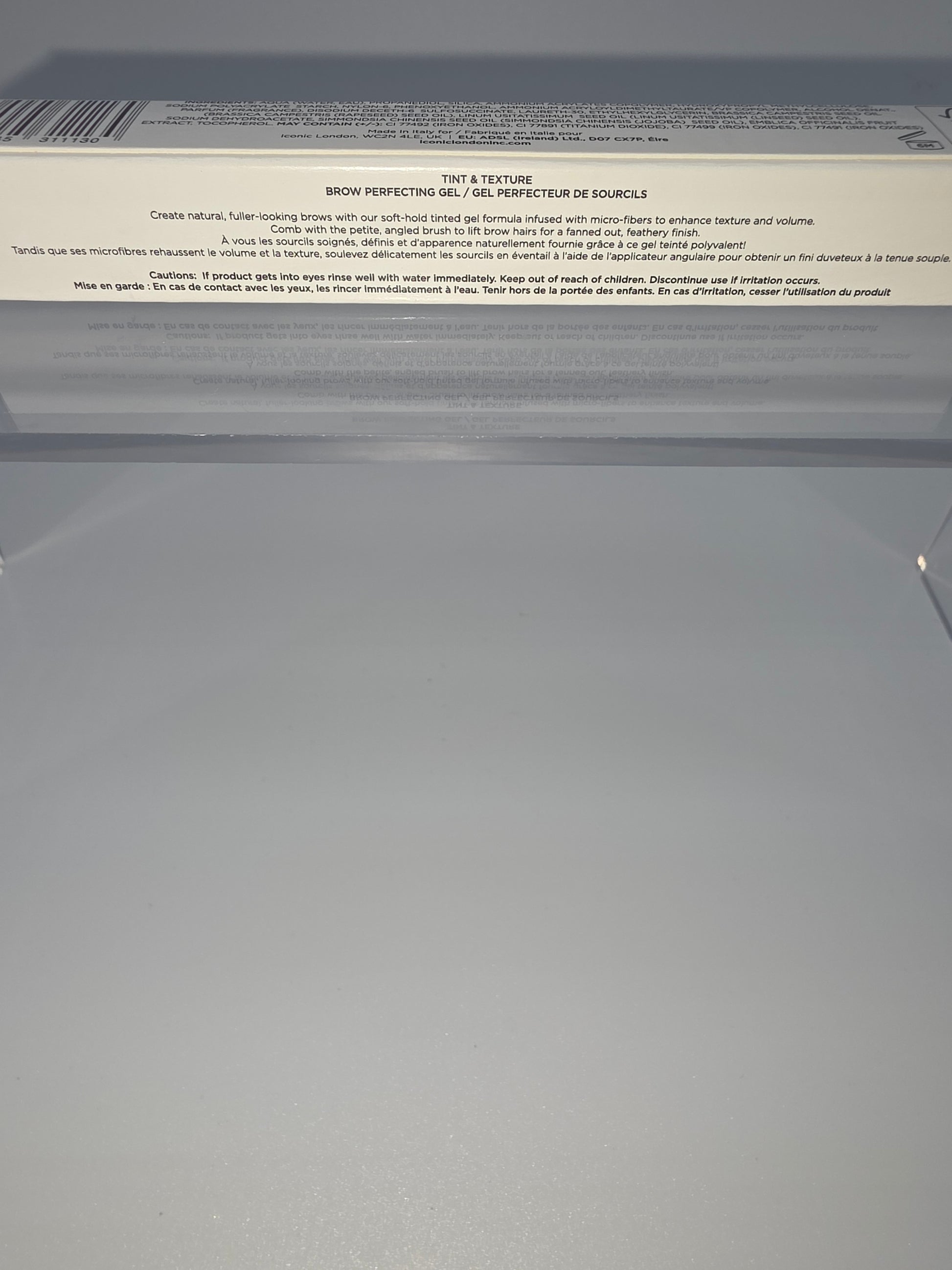 ICONIC London Tint & Texture Brow‑Perfecting Gel in the Medium Brown shade (0.10 fl oz / 3 mL). A tinted brow gel by ICONIC London that combines pigment with micro-fibers to fill in, volumize, and naturally tint your brows. The lightweight gelatinous formula provides a flexible hold and includes nourishing botanical oils to condition the hairs, resulting in fuller, feathered eyebrows with a polished, natural finish. New in box.
