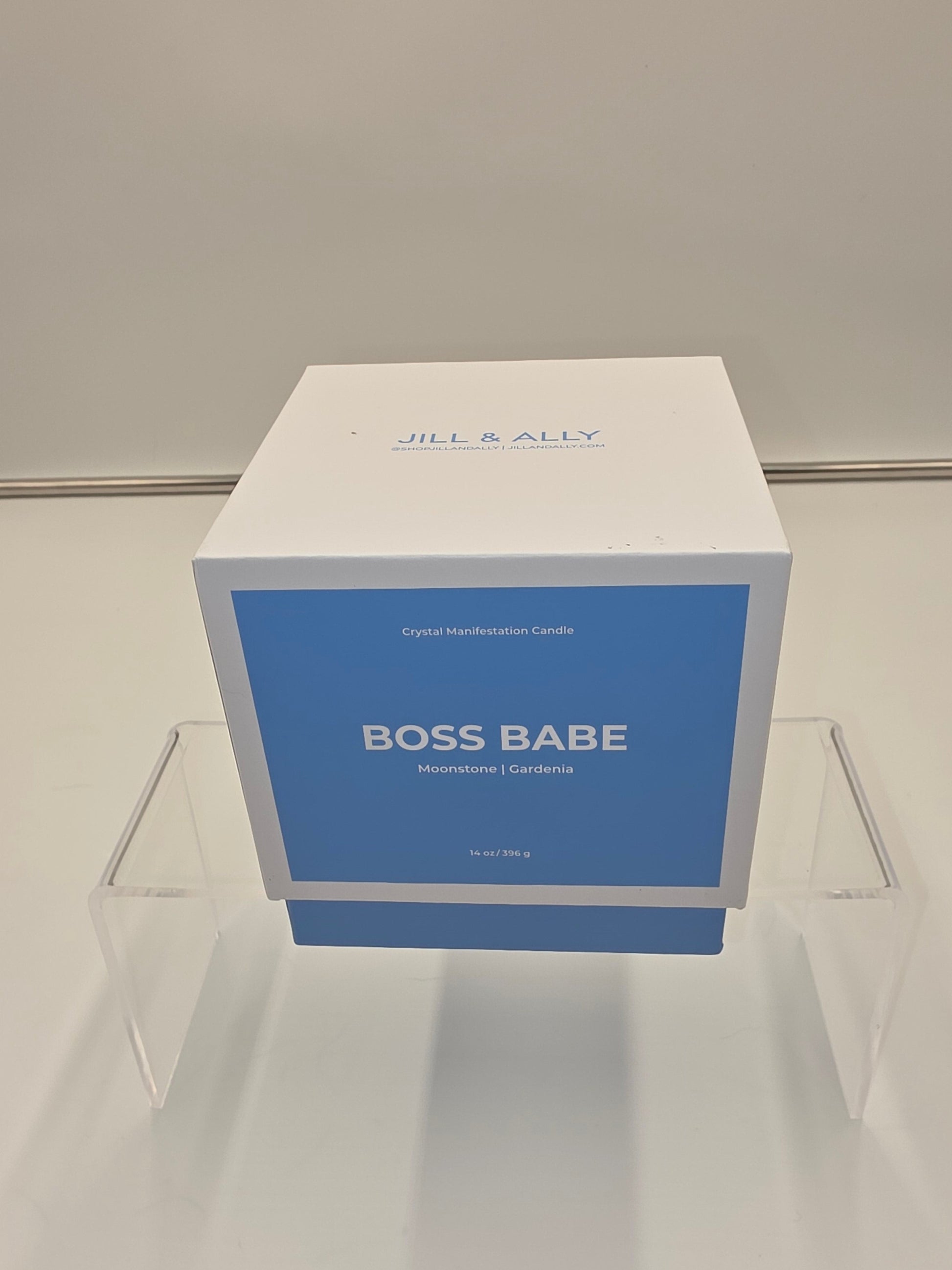 Light up your ambition with the Jill & Ally Boss Babe Crystal Manifestation Candle! Housed in a sleek 14 oz. glass jar and arriving fresh in its box, this candle is your perfect sidekick for manifesting goals and good vibes. Let its glow inspire your inner boss babe to shine brighter every day.