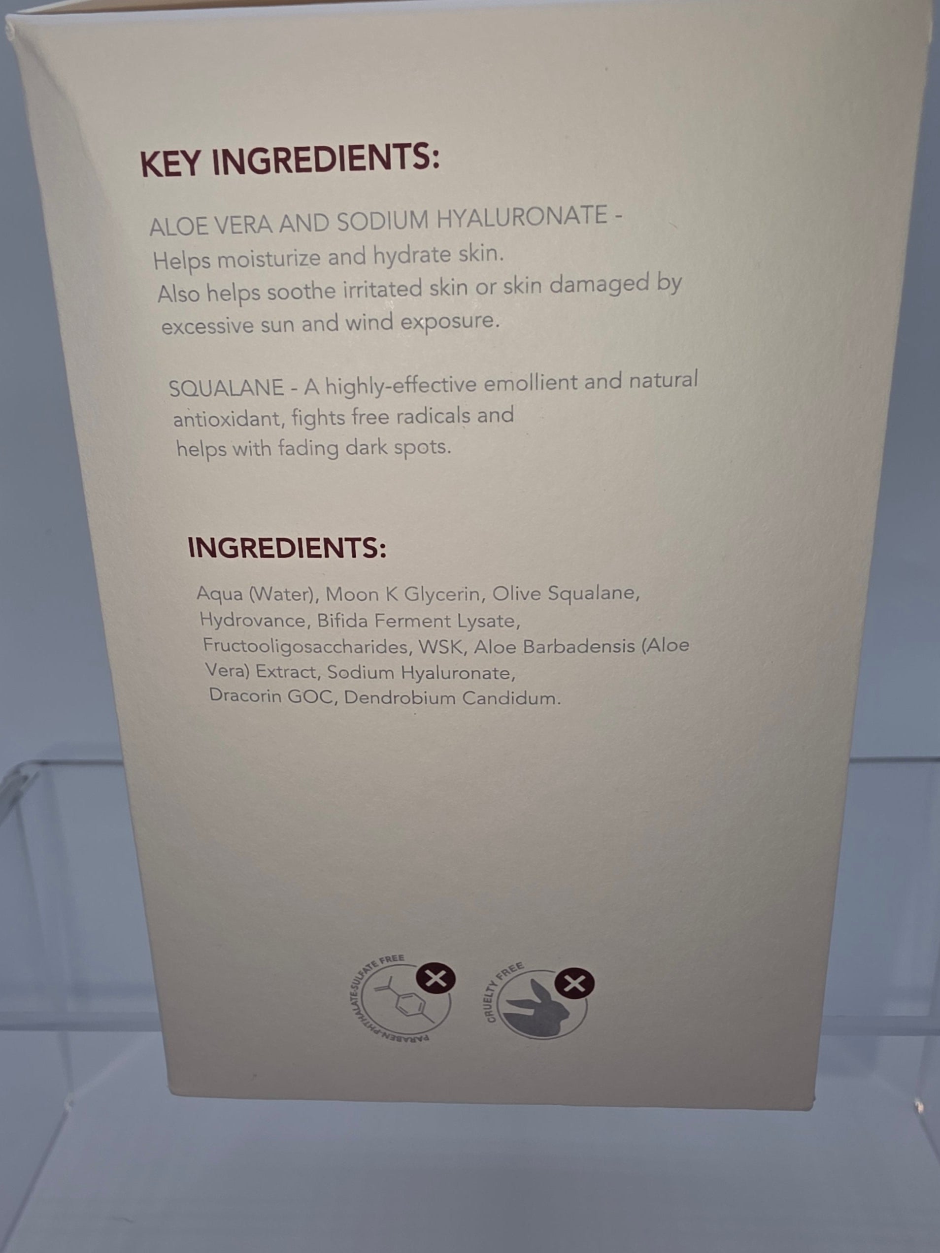 Lorde + Belle HydraPure Mask, a luxury skincare item that comes as a box of 8 freeze-dried sheet masks. It's designed for hydration and soothing, using advanced water-activated technology. Key skin-loving ingredients include prebiotics and probiotics to support your skin's microbiome, squalane to lock in moisture, sodium hyaluronate for deep hydration, and aloe vera to soothe and calm the skin. New in box.