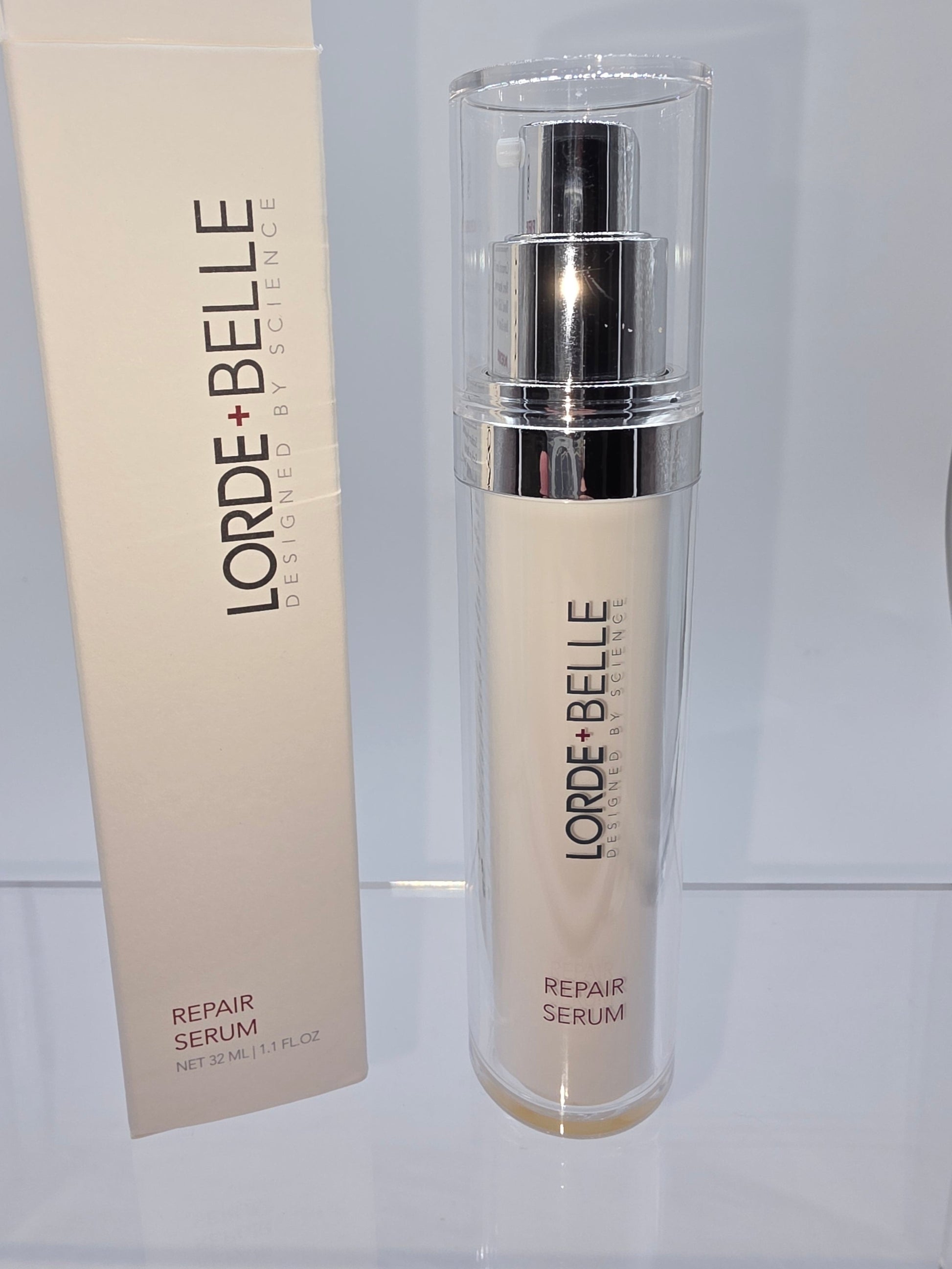 Lorde + Belle Repair Serum, a high-end, anti‑aging skincare serum. It combines a unique blend called HyRetin (a fusion of retinoic acid and hyaluronic acid) with Probiotic Bacillus Ferment, plus a variety of powerful antioxidants and hydrating agents—all designed to improve elasticity, hydrate deeply, support collagen production, and enhance skin barrier health. New in box.