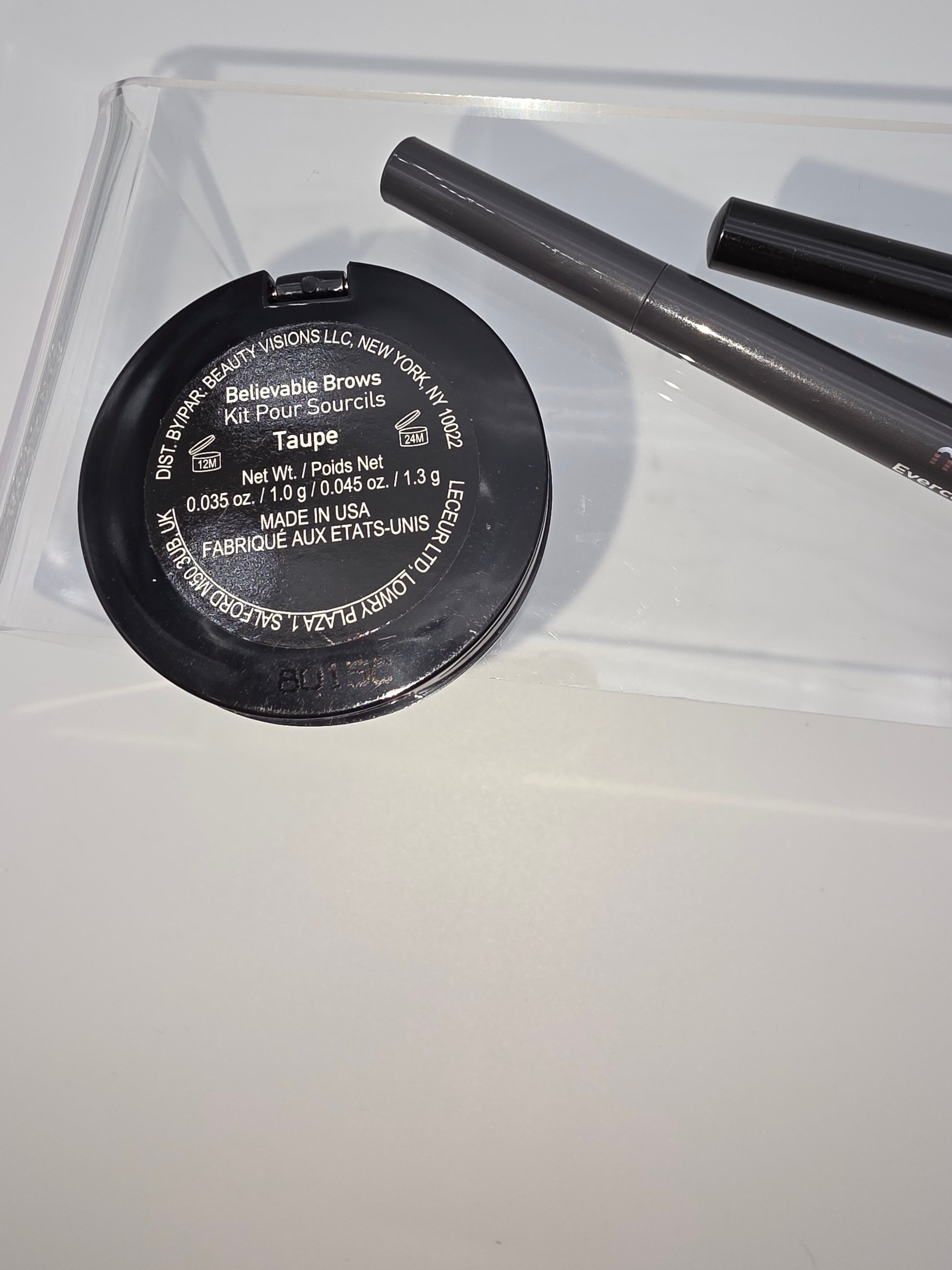 You’ve got a Mally Believable Brows two‑in‑one eyebrow kit (with wax primer and powder) plus a Mally Evercolor eyeliner, a liquid / gel formula in shades Stormy and Ebony. New items.