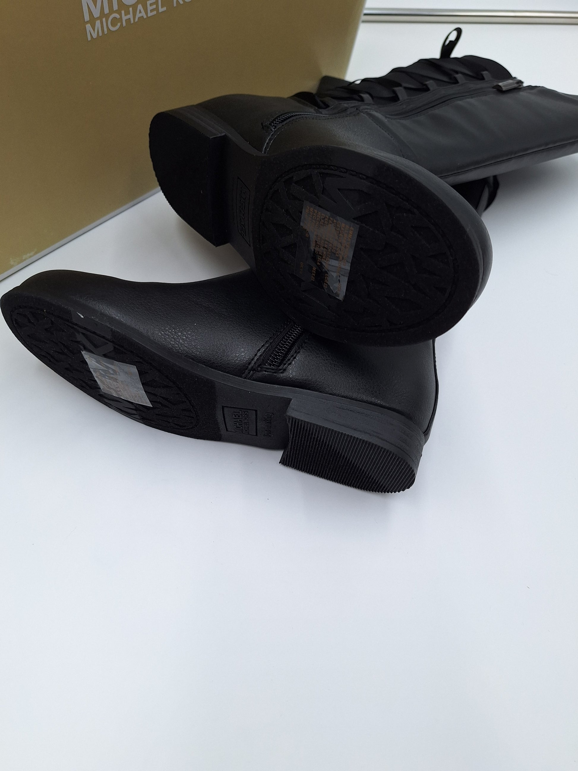 Step out in style with the Michael Kors Youth Girl's Black Boots, Emma Venon. Designed for comfort and ease, these size 2 boots feature a convenient side zipper and stylish lace-up back detail. Perfect for young fashionistas, they combine trendy design with practical wearability. Brand new in the box, these boots are ready to elevate any outfit with a touch of luxury and confidence.
