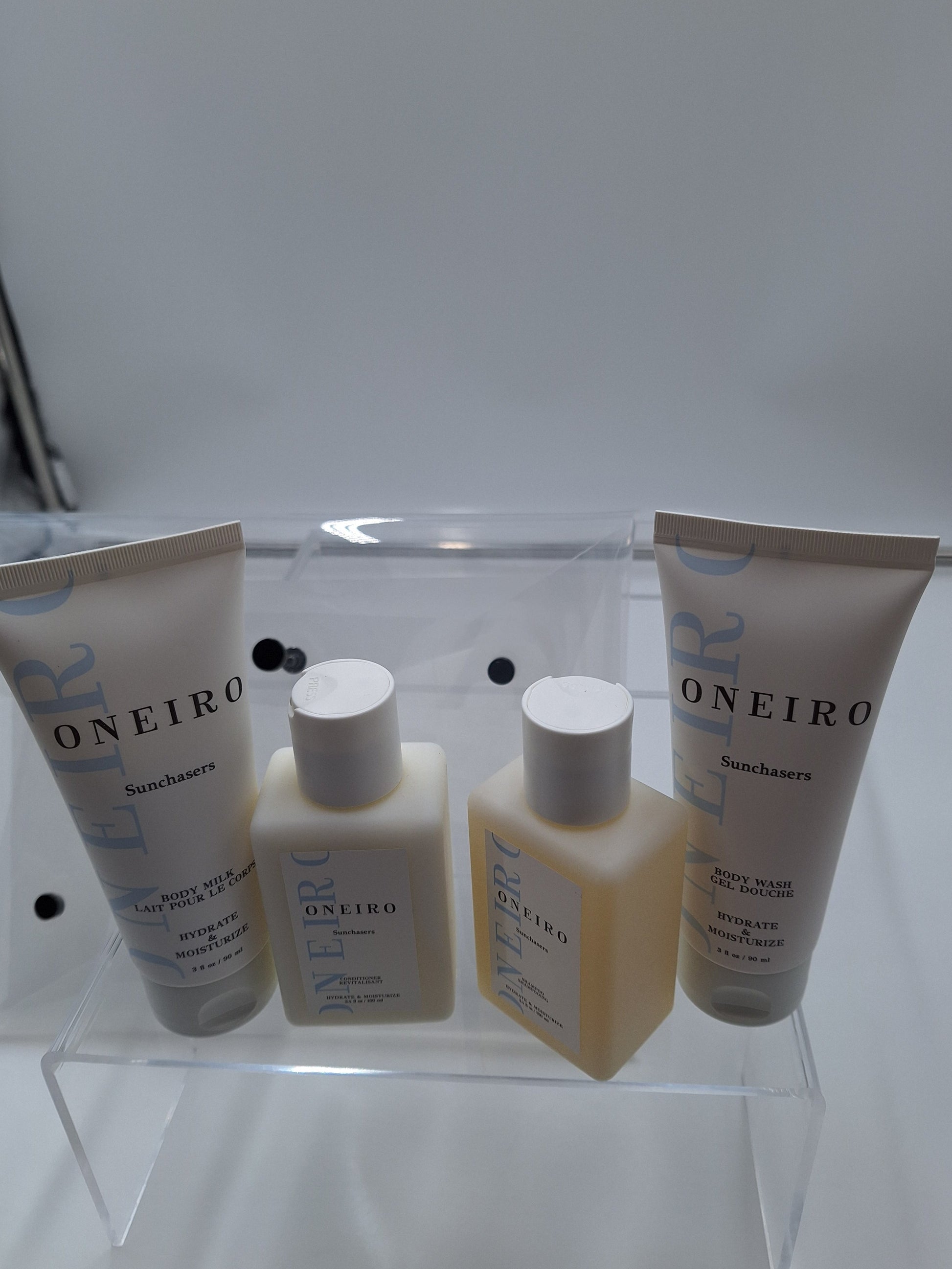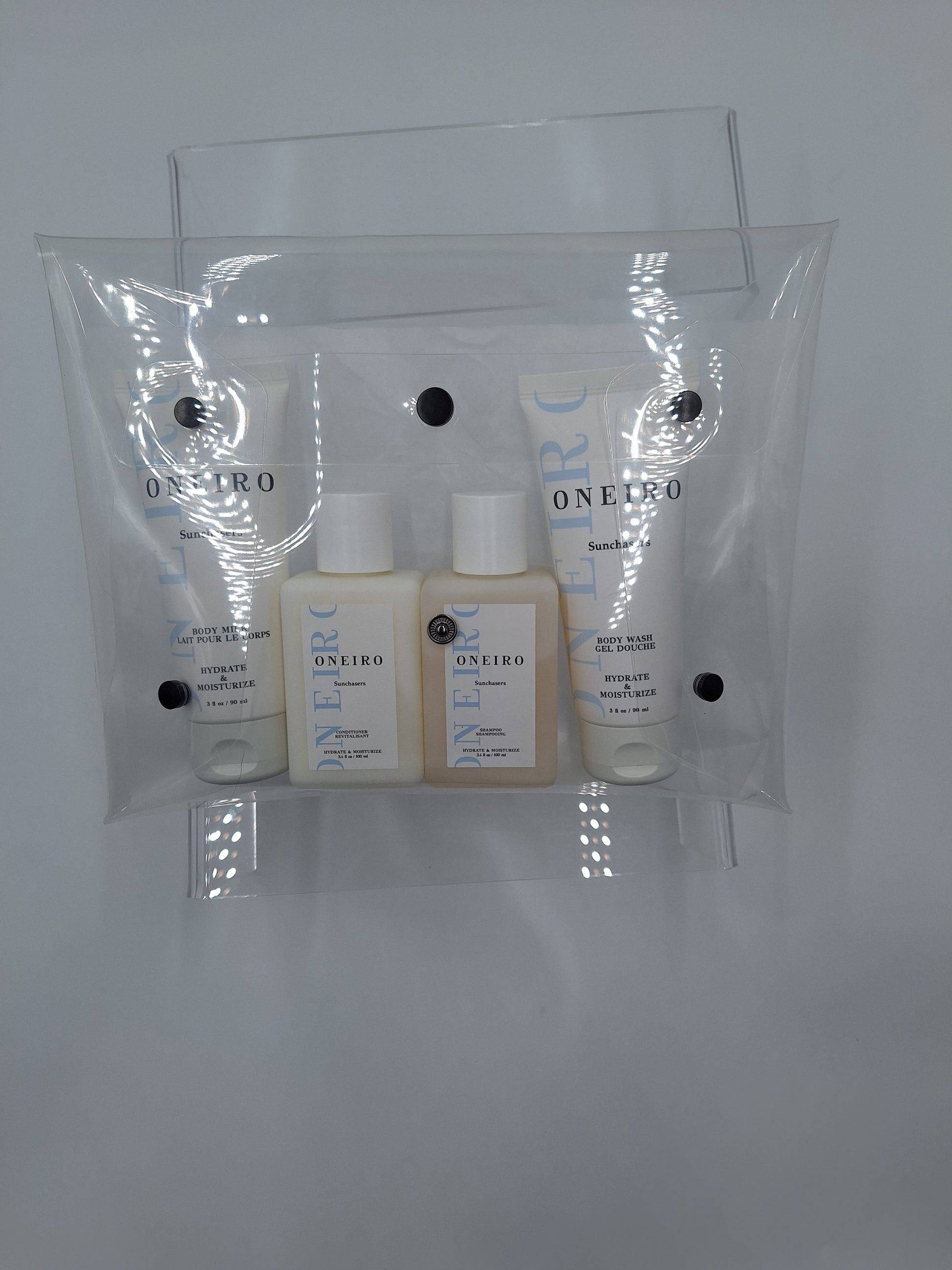 The ONEIRO Sunchasers Ready, Go Kit offers a carefully curated selection of all-natural products designed to nourish and protect your body and hair during travel. This expert-formulated kit ensures your skin stays hydrated and your hair remains healthy, even under the sun’s exposure. Ideal for on-the-go care, it combines convenience with effective natural ingredients to support your wellness routine wherever your adventures take you.