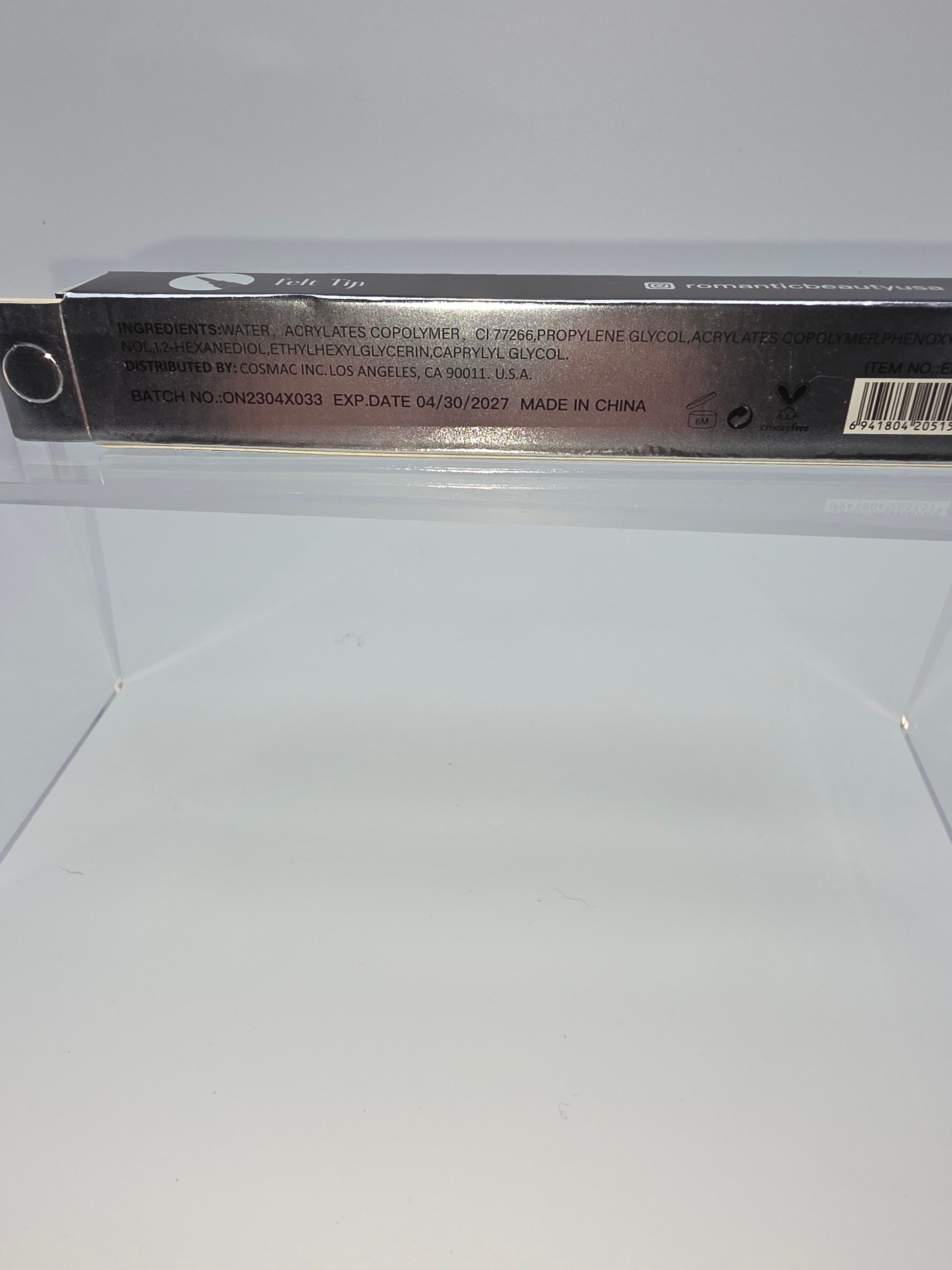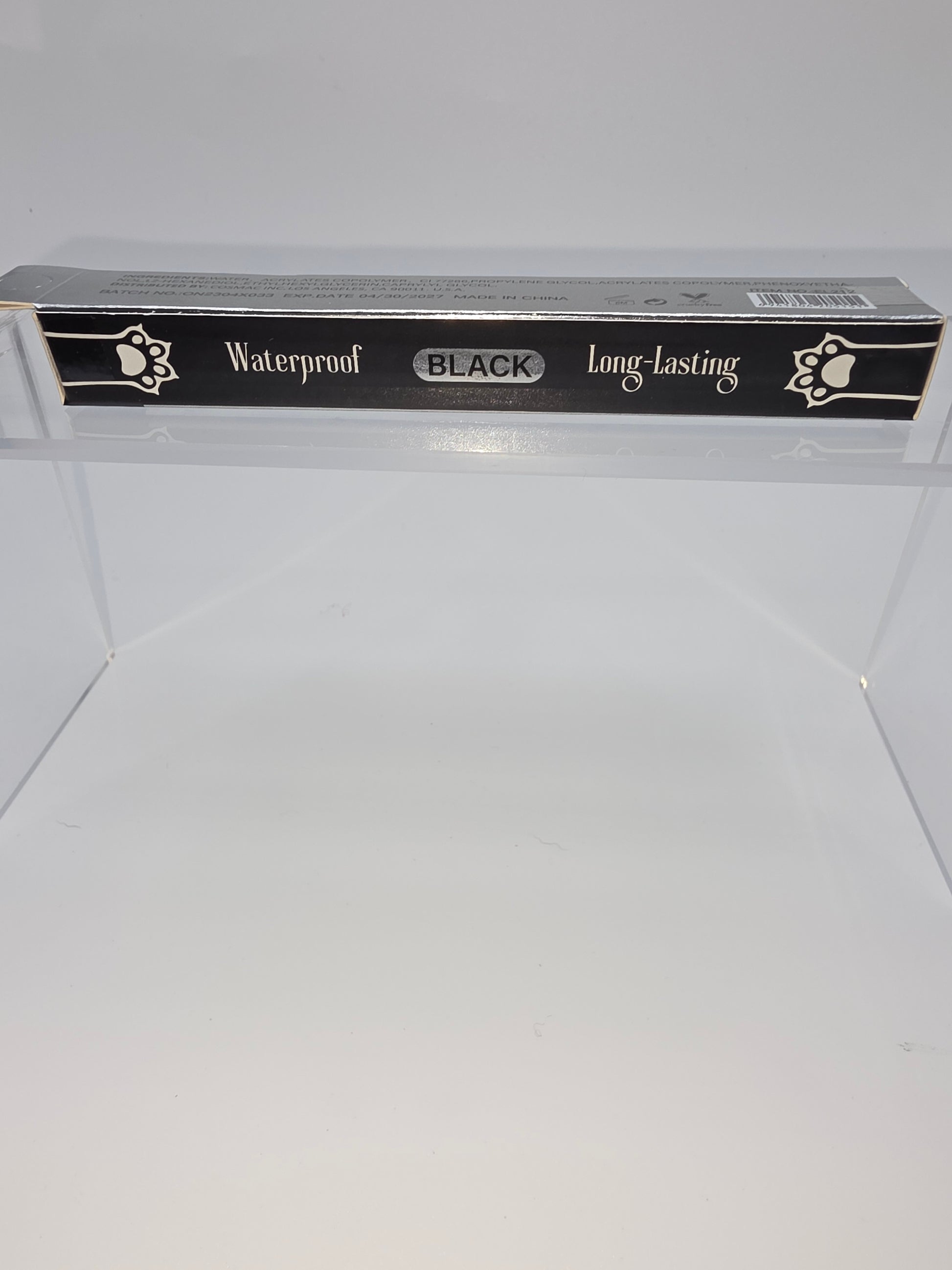 Romantic Beauty “Cute Cat Eyeliner”—a fun, felt‑tip black liquid eyeliner with a paw-print design on the barrel. It’s labeled as waterproof and long-lasting, and perfect for creating crisp cat‑eyes or bold liner looks. New item.
