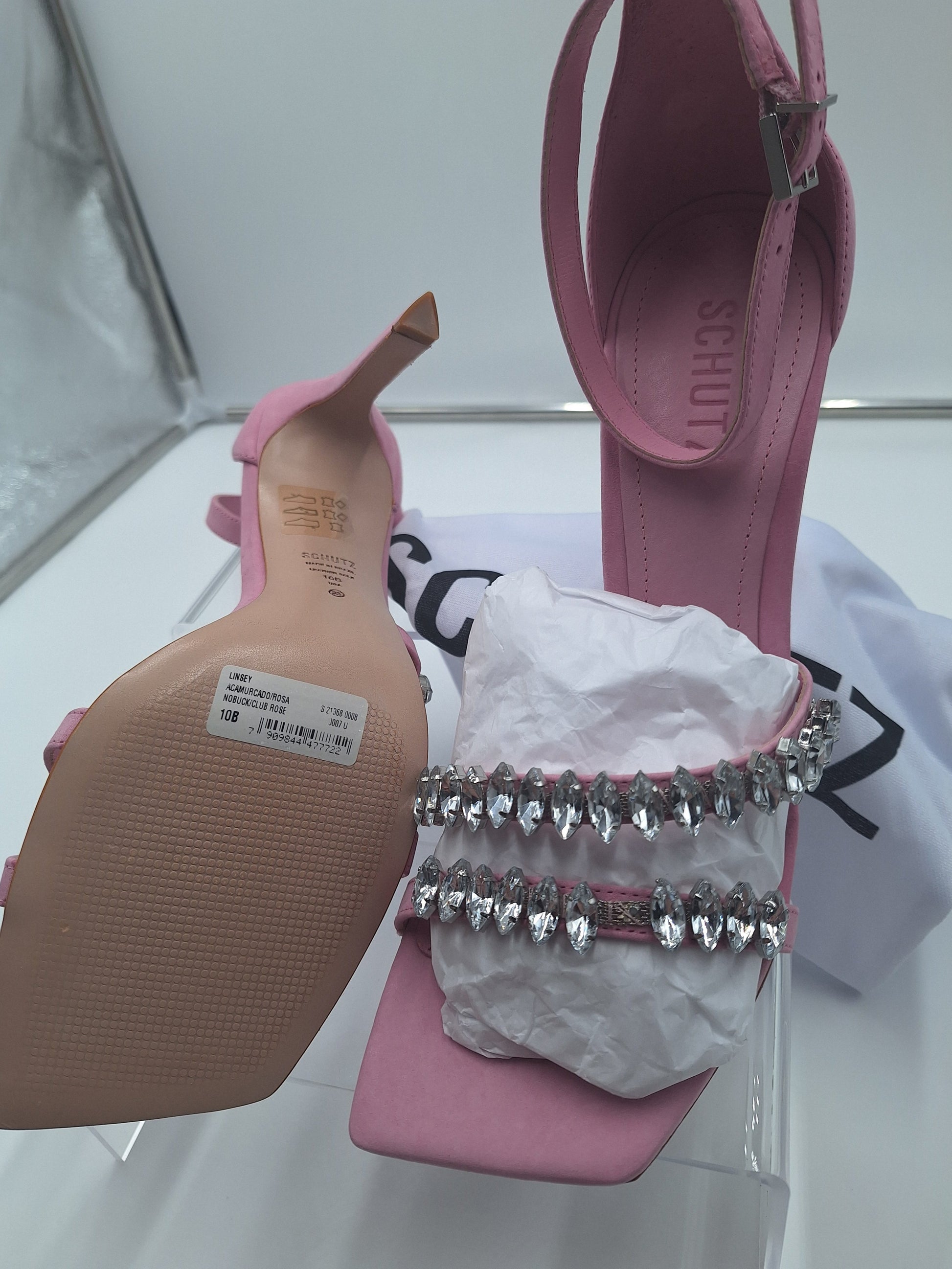 These Women's Linsey Crystal Nubuck Sandals in rose combine elegant embellishments with premium nubuck leather for a refined look. Designed for comfort and style, they come new with tags, including the original box and dust bag, ensuring quality and protection. Perfect for adding a sophisticated touch to any outfit. Available in size 10.