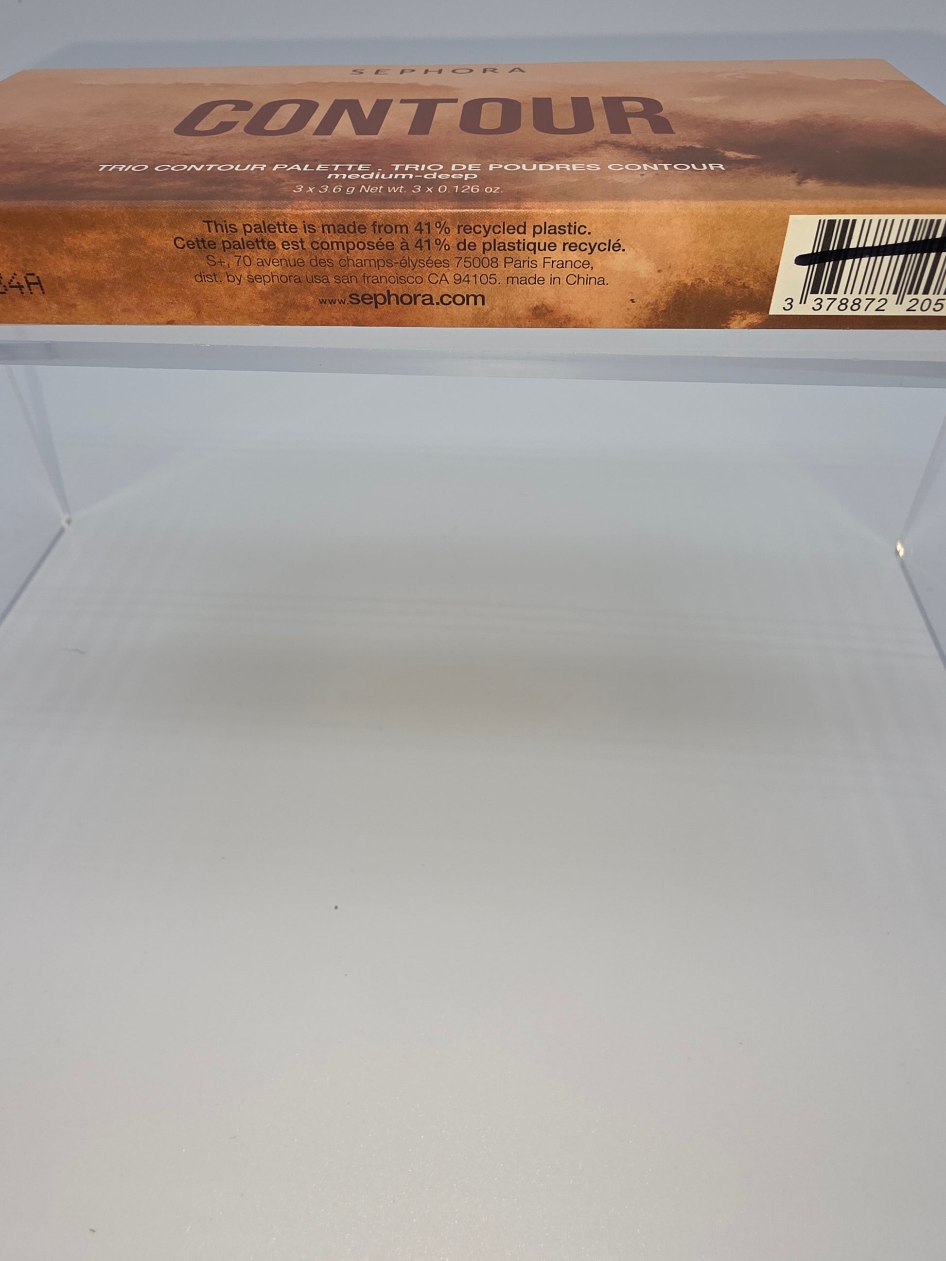 Sephora Collection Trio Contour Face Palette in the Medium–Deep shade range. It includes three pressed powders—typically two matte shades (for contour and bronzing) and one satin highlighter—to help sculpt, define, and illuminate the face. New and sealed.