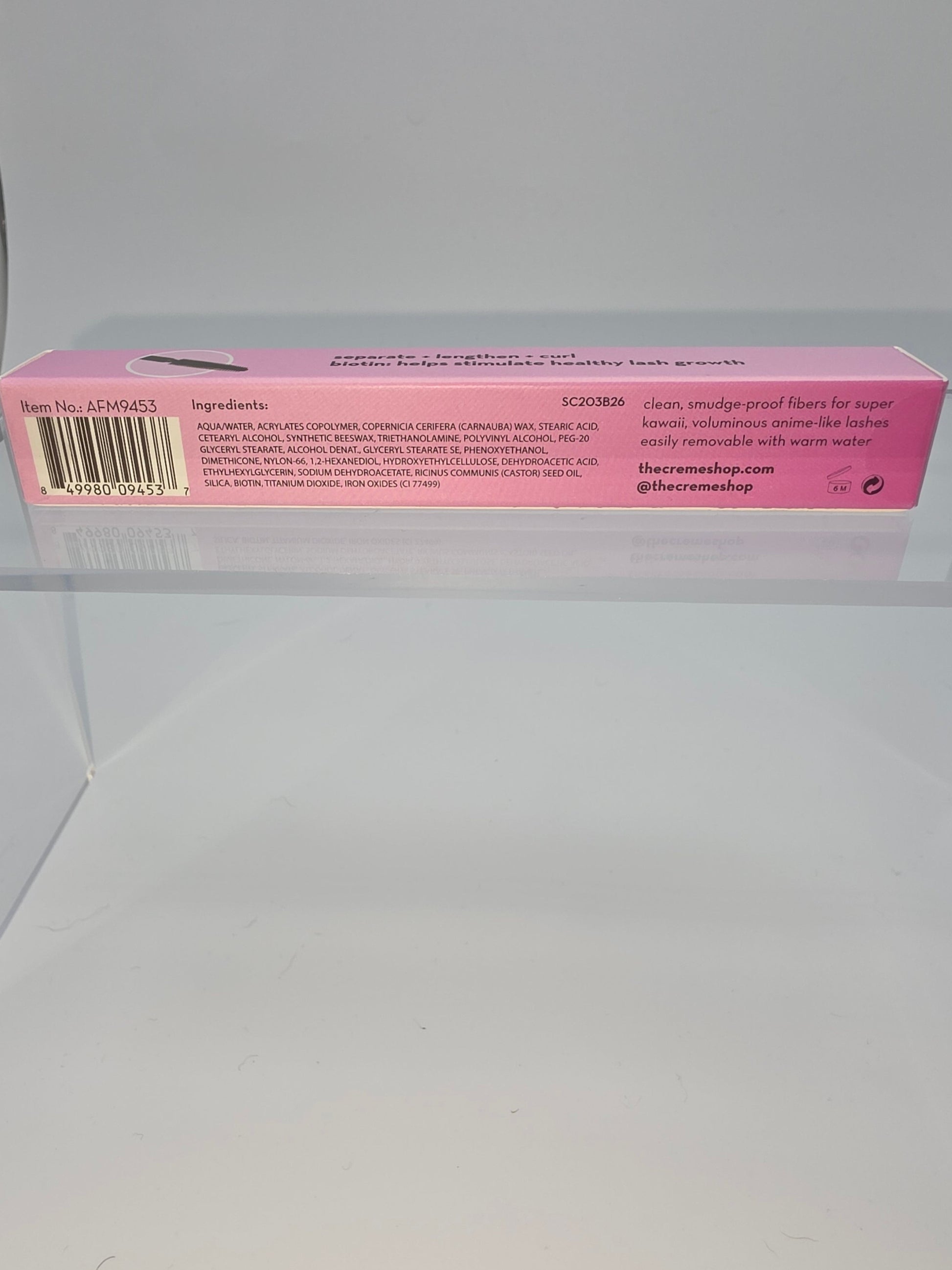 Transform your lashes with The Crème Shop Anime Mascara in Black. Specially formulated with infused fibers, this mascara delivers anime-like volume, dramatic length, and smudge-proof wear. The lightweight formula enhances curl while nourishing ingredients like castor seed oil and biotin help promote healthy lash growth. Designed to remove easily with warm water, this mascara is both fun and functional—perfect for bold, wide-eyed looks.