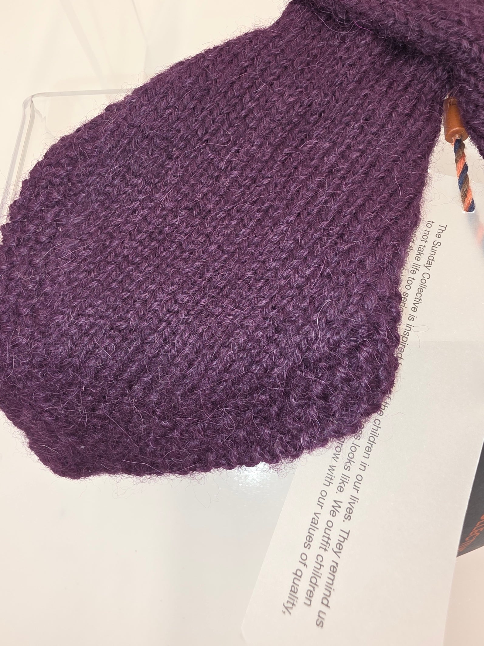 The Sunday Collective Kids Scarf in huckleberry offers a safe and snug alternative to traditional scarves, ideal for toddlers and young children. Crafted from organic, sustainably sourced materials, this one-size accessory ensures comfort and environmental responsibility. New with tags, it combines thoughtful design with expert care for your child’s warmth and safety.