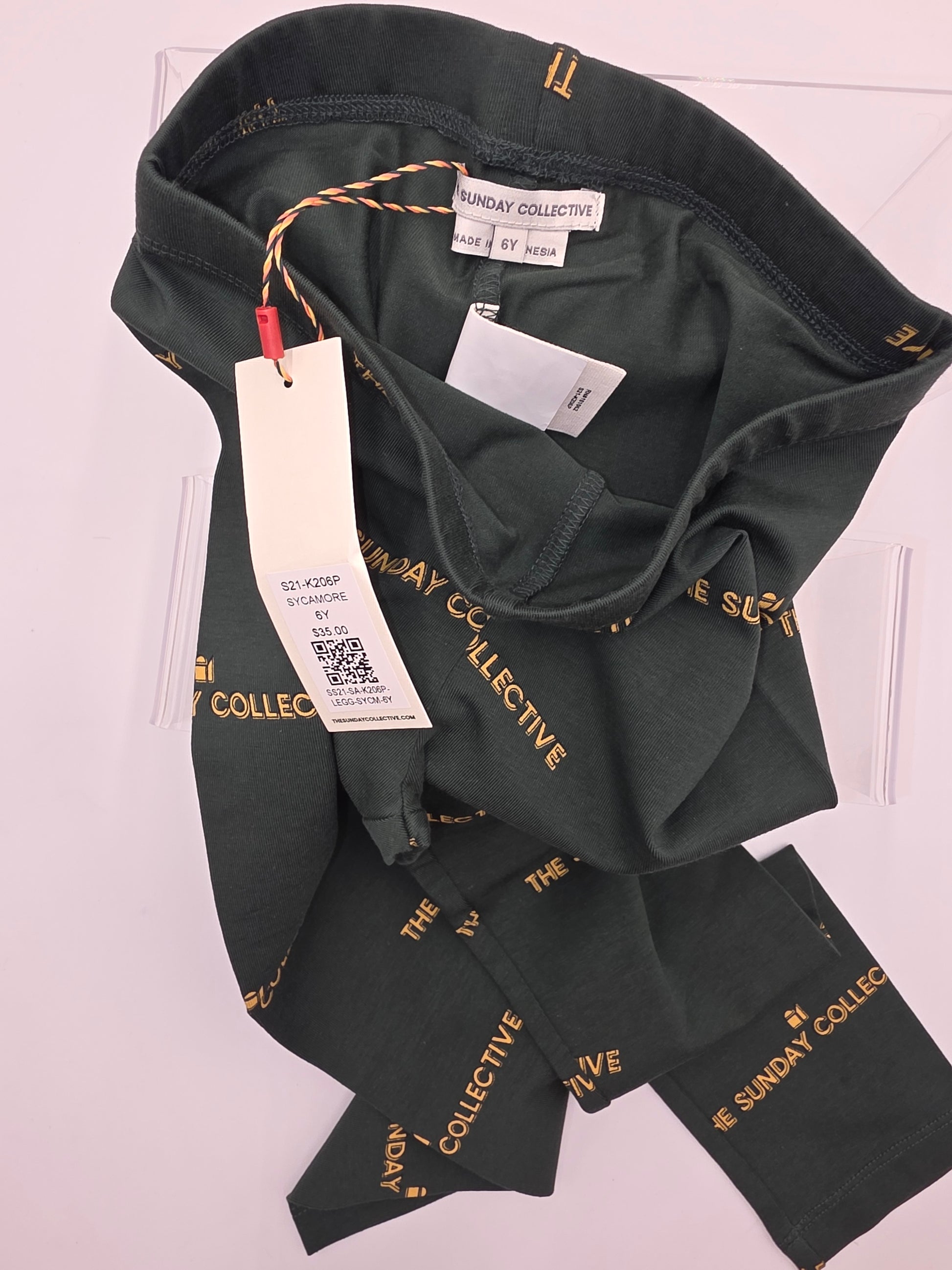 Slip your little one into The Sunday Collective Leggings and feel the perfect blend of comfort and style! These dark green, fitted leggings feature a bright yellow brand name that pops, making every move a statement. Crafted from organic, sustainably sourced materials, they’re as kind to the planet as they are to your skin. New with tags and ready to join your collection!
