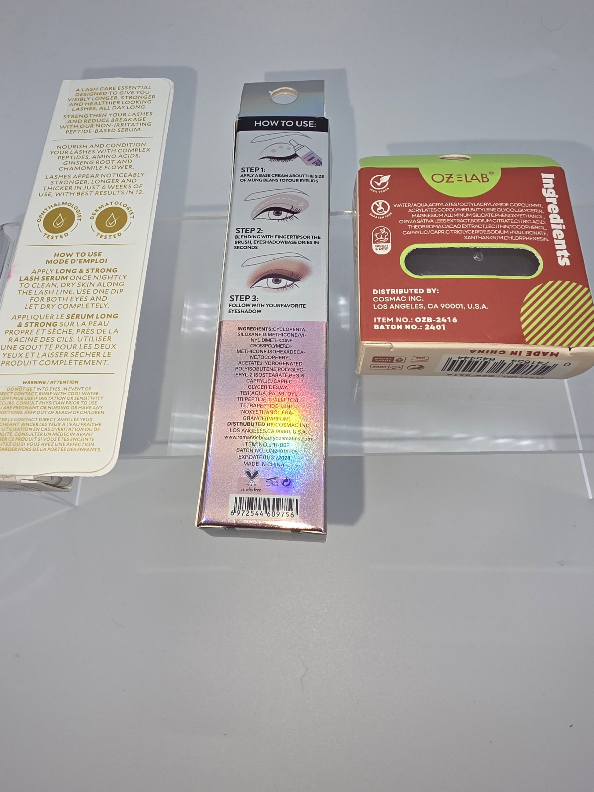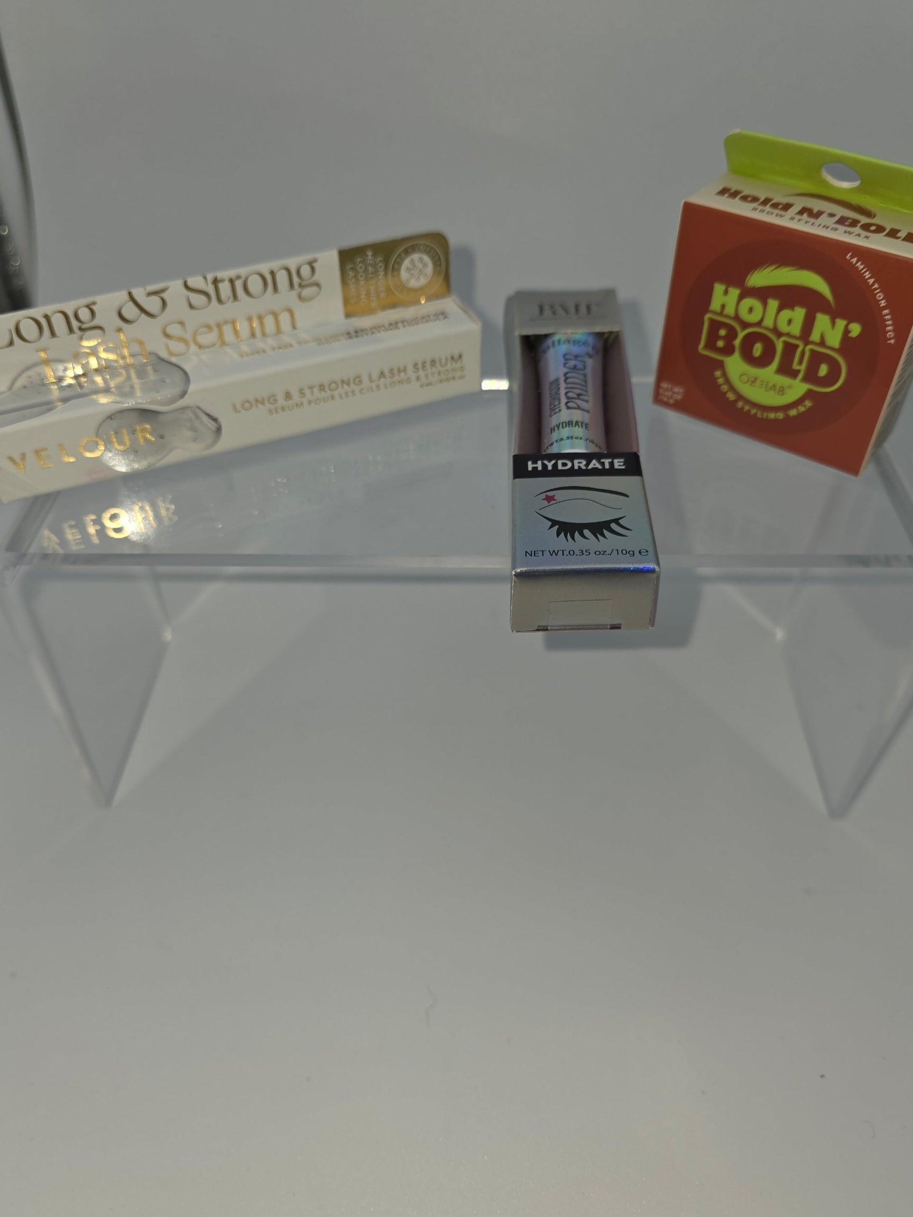 Velour Long & Strong Lash Serum + Romantic Beauty Collagen Eyeshadow Primer + OZéLab Hold N’ Bold Brow Styling Wax (Bundle of 3)